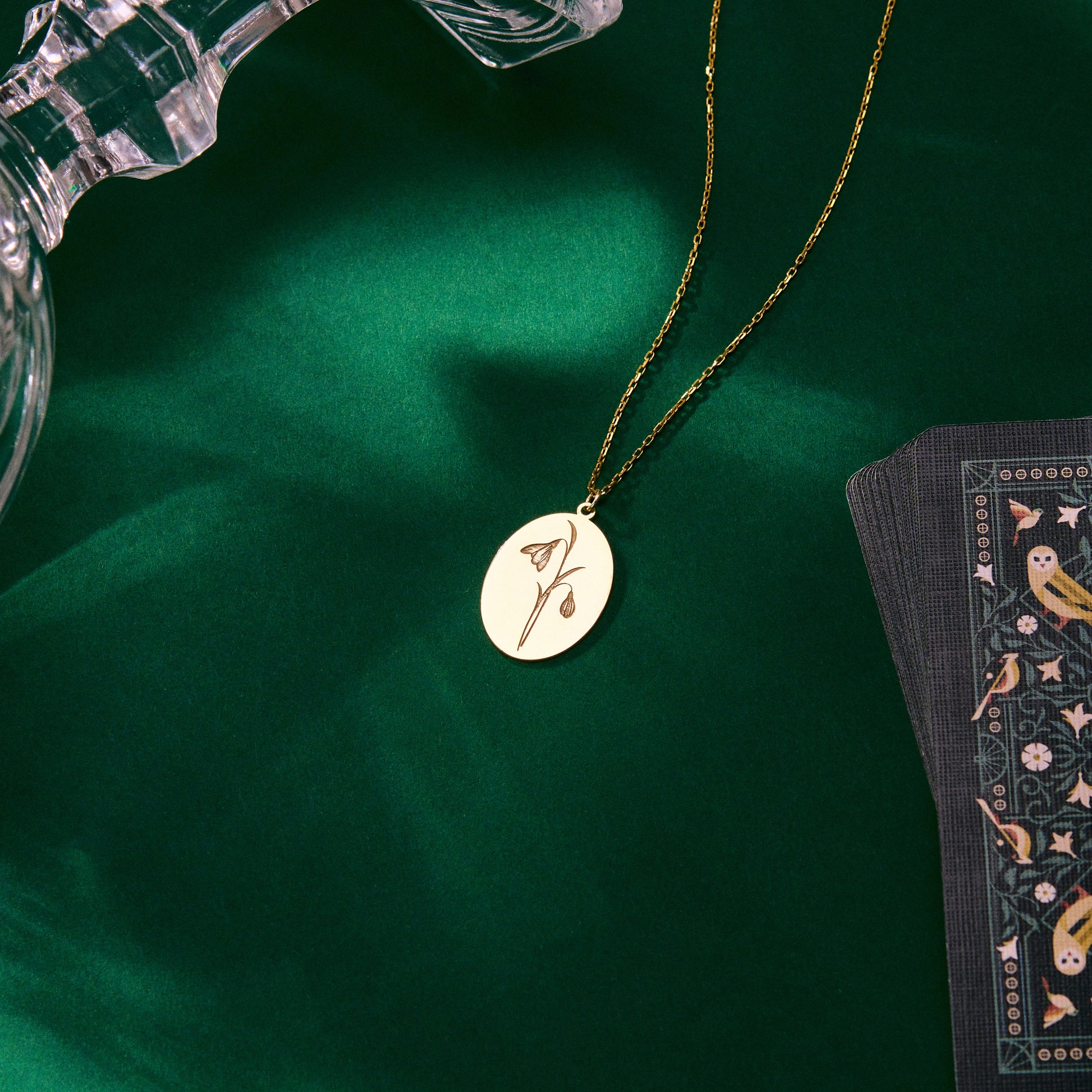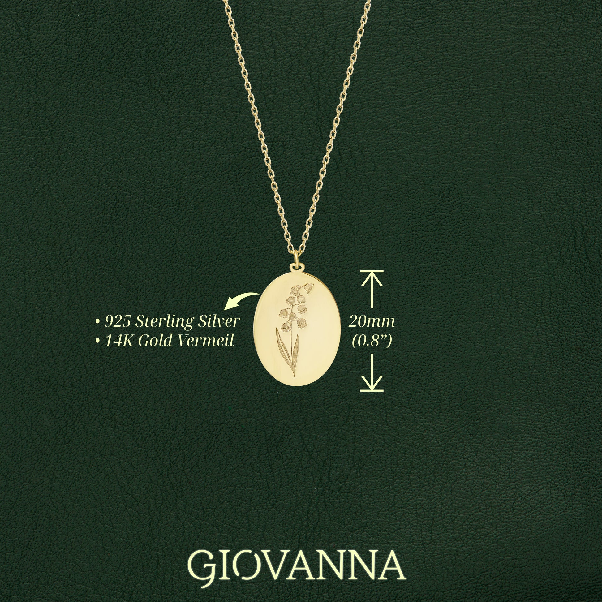 The Custom Birth Flower Necklace celebrates the quiet poetry of nature and its ties to memory. An oval pendant is engraved with a delicate bloom, each flower drawn to mark its corresponding month. Handcrafted in sterling silver and finished with 14k gold vermeil, it brings a sense of intimacy and permanence, transforming a personal symbol into a piece of enduring elegance.