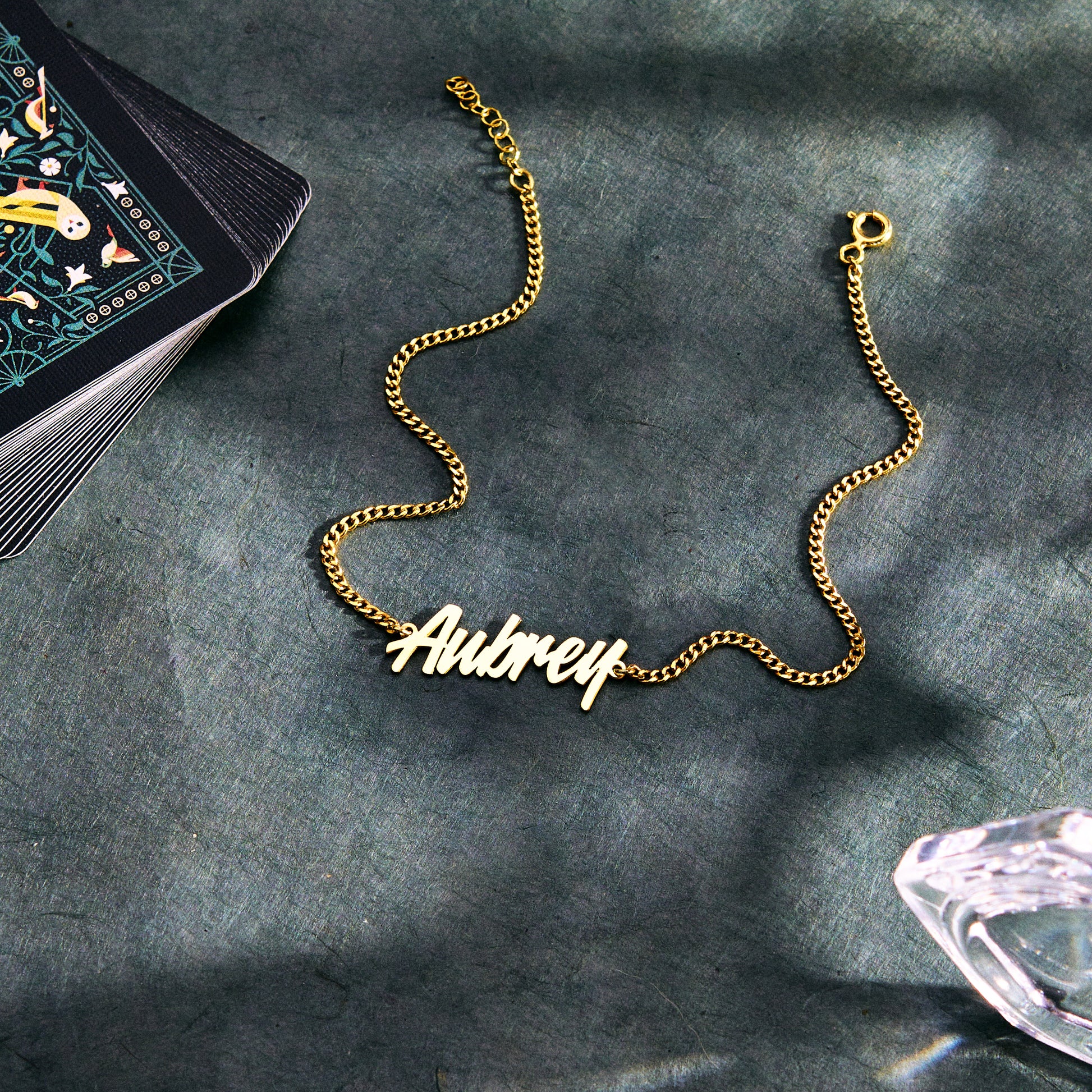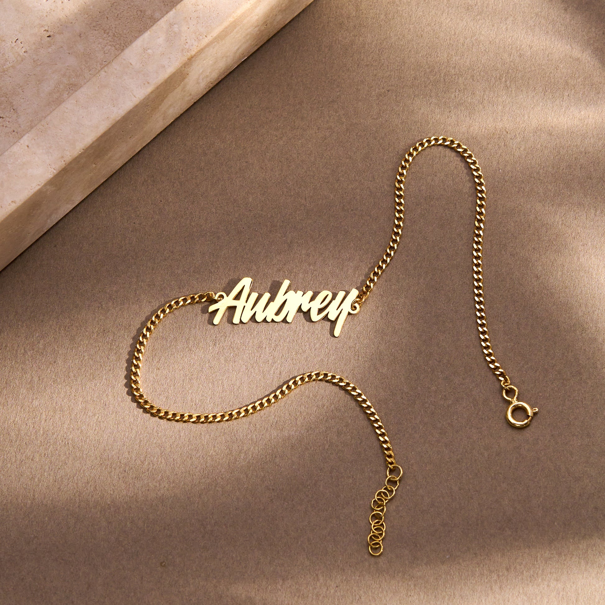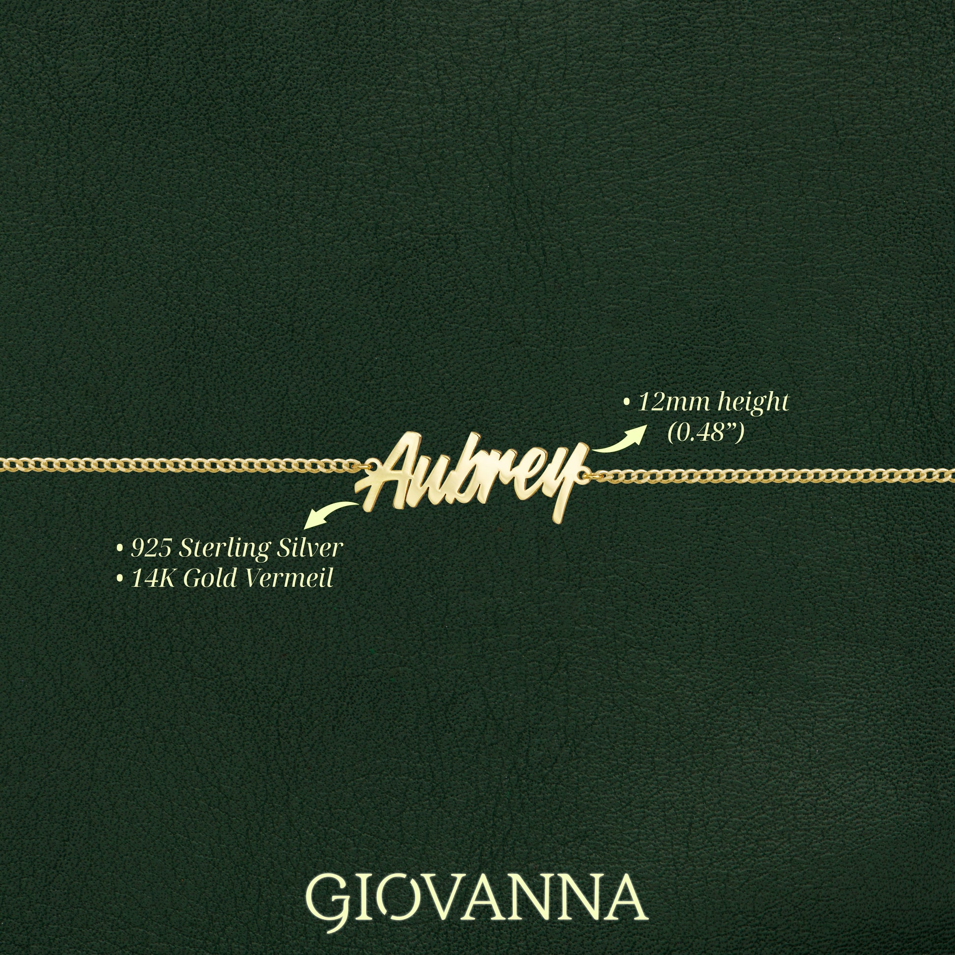The Custom Name Anklet turns a personal signature into jewelry. Handcrafted in sterling silver and finished with 14k gold vermeil, it features your chosen name in a flowing script along a fine chain. Elegant and individual, it transforms a meaningful word into a modern keepsake.