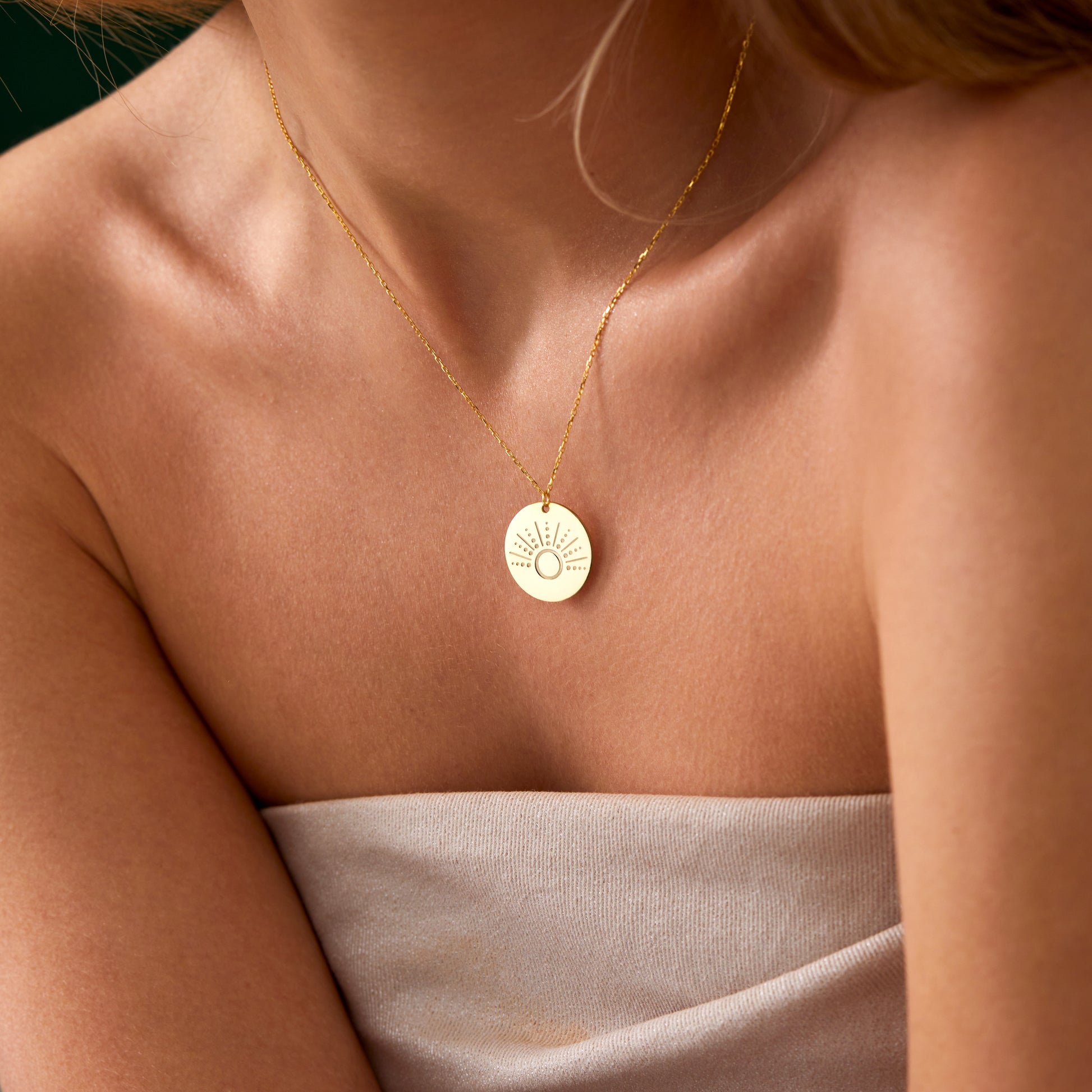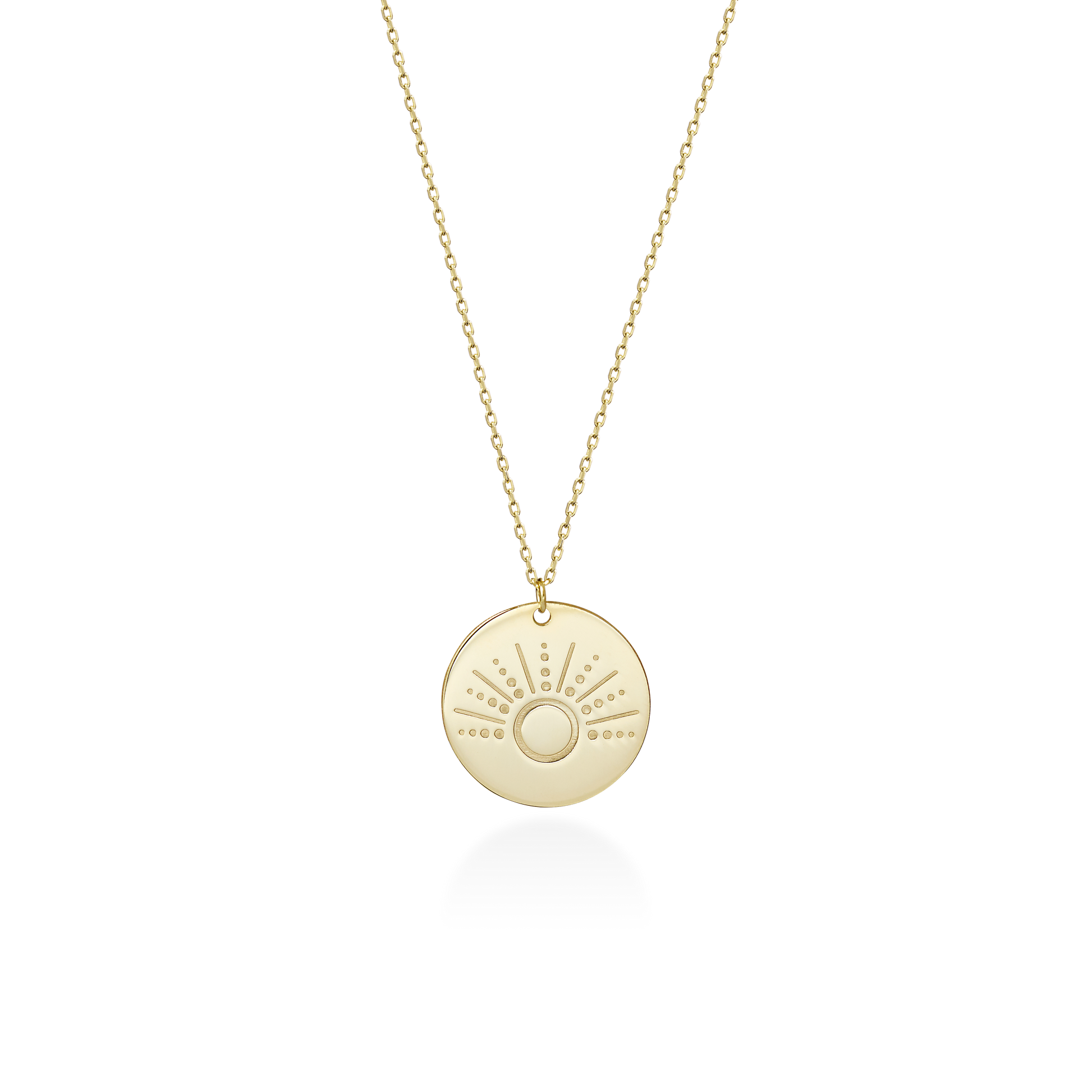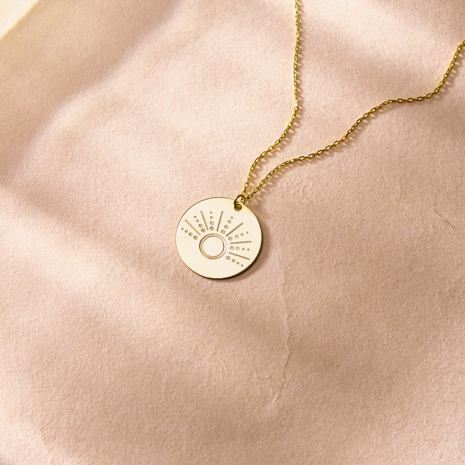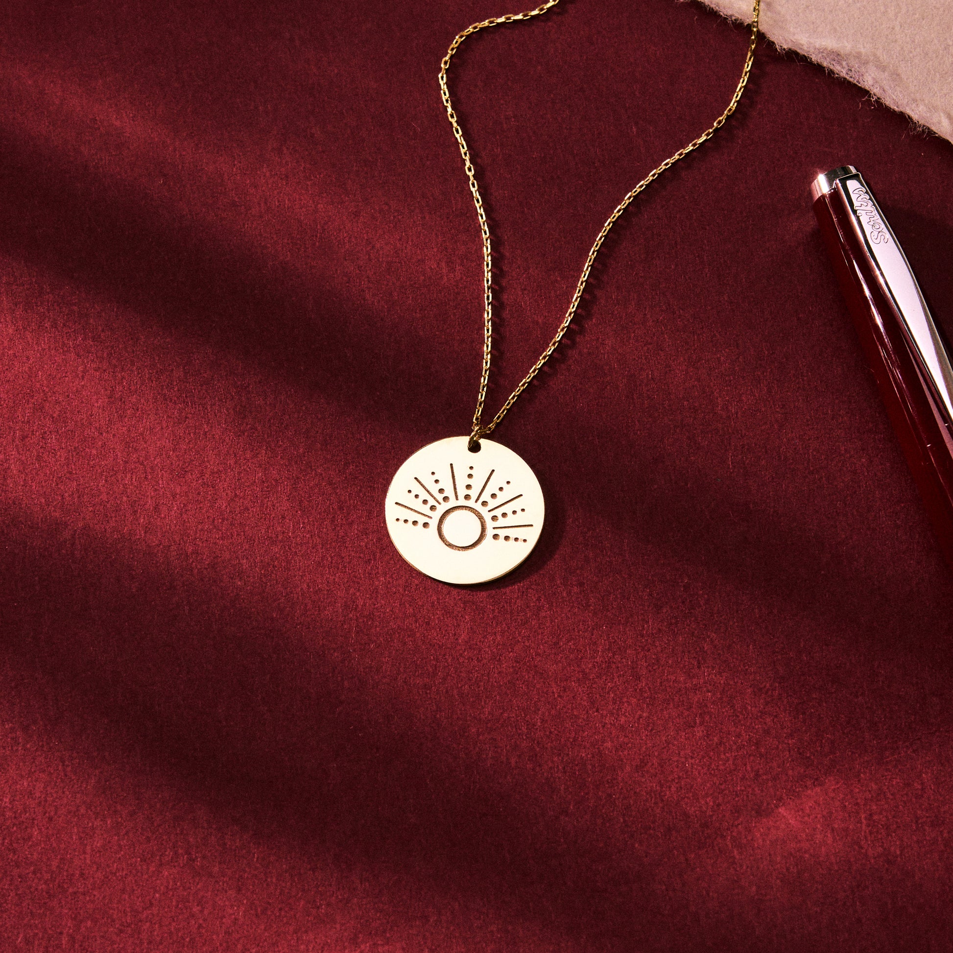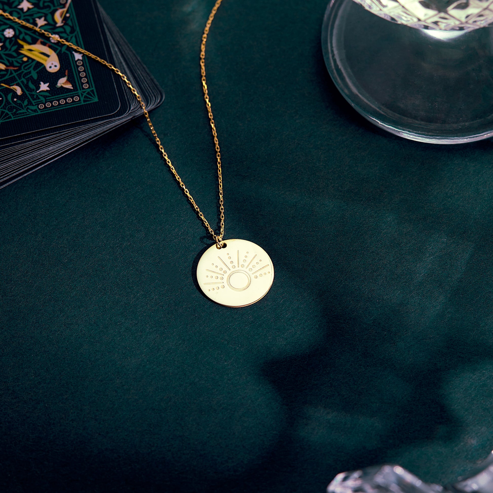 The Minimalist Sun Necklace radiates understated brilliance. Etched with fine, deliberate lines on a polished medallion, it captures the quiet geometry of light. Handcrafted in sterling silver and finished with 14k gold vermeil, itโs a modern emblem of warmth and renewal; an everyday piece that speaks with subtle clarity.